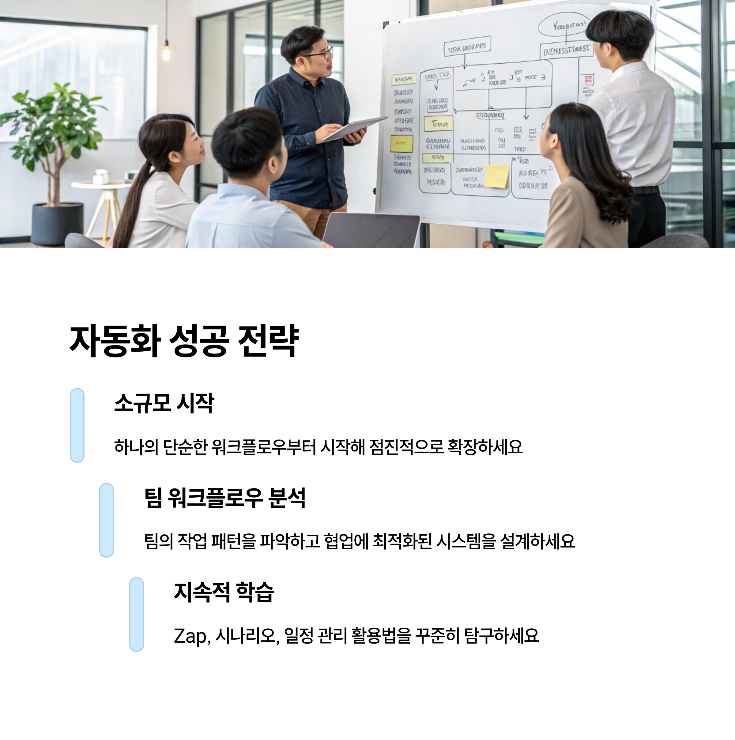 자동화는 더 이상 기술자들만의 영역이 아닙니다. 특히 마케터와 기획자들에게는 경쟁력을 좌우하는 필수 역량입니다. 반복 업무에서 벗어나 창의적인 기획에 집중하고 싶다면, 지금부터 자동화 툴을 활용해 보세요. 처음에는 낯설고 복잡하게 느껴질 수 있지만, 일정 패턴을 시스템으로 전환하는 순간 눈앞의 업무 방식이 완전히 달라질 것입니다. 이 글에서 소개한 자동화 툴들을 직접 시도해보고, 나만의 스마트한 업무 생태계를 구축해 보세요.
