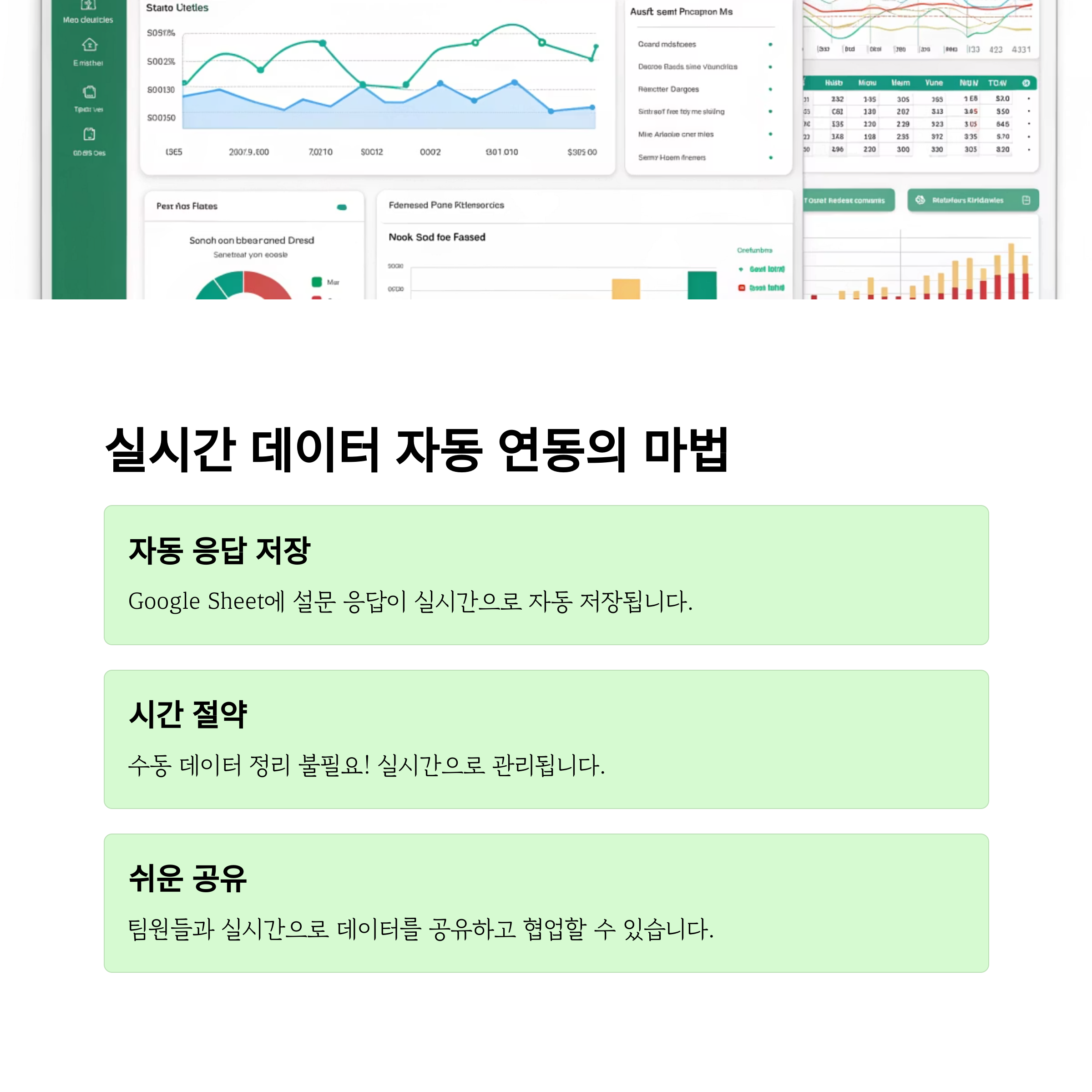 | 기본 시트에 실시간 저장 | 다양한 앱 간 데이터 흐름 설계 | 자동 리포트 생성 + 이메일 발송 |