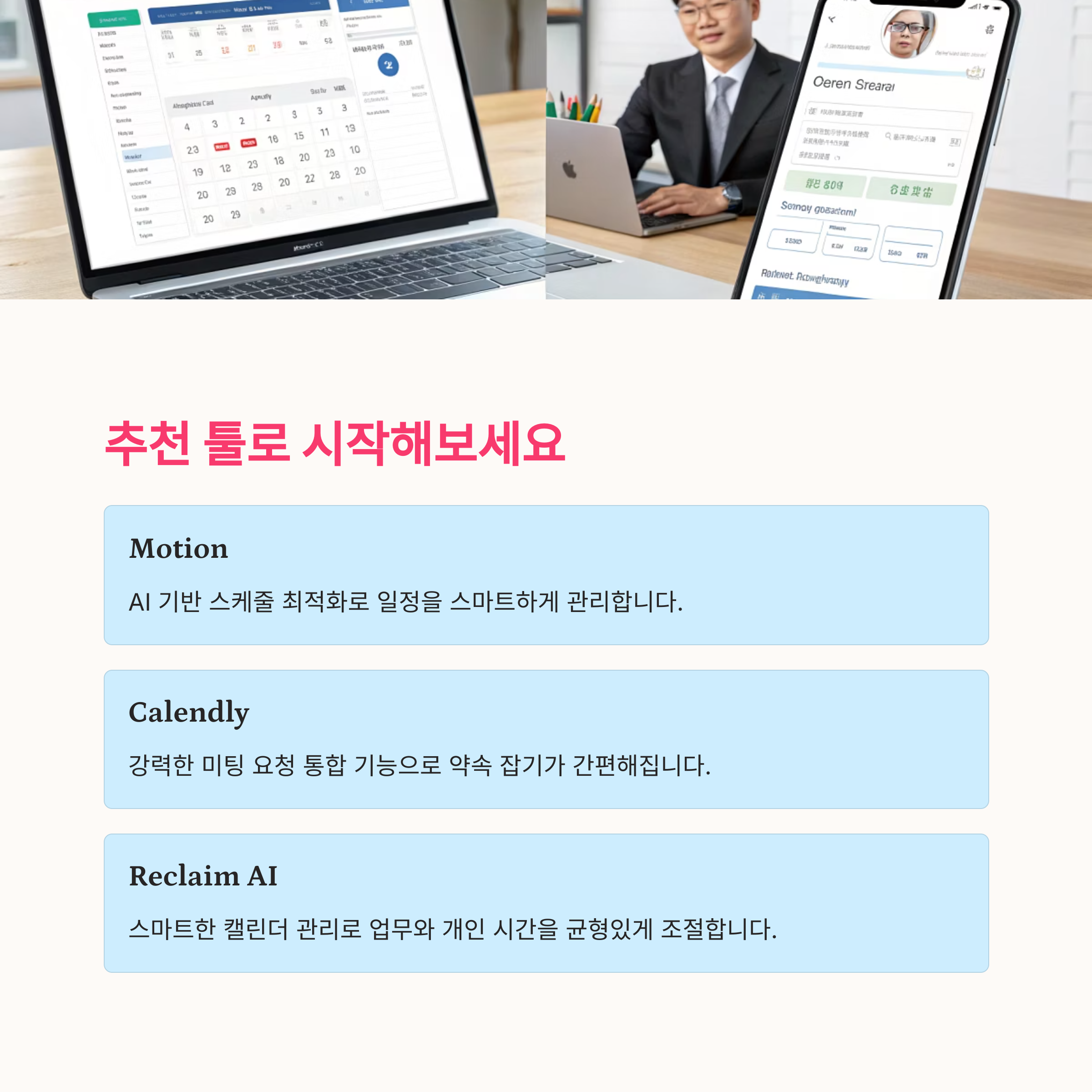 | Reclaim AI | 개인 시간 보호 + 일정 리밸런싱 | 집중 업무 시간 자동 확보 |