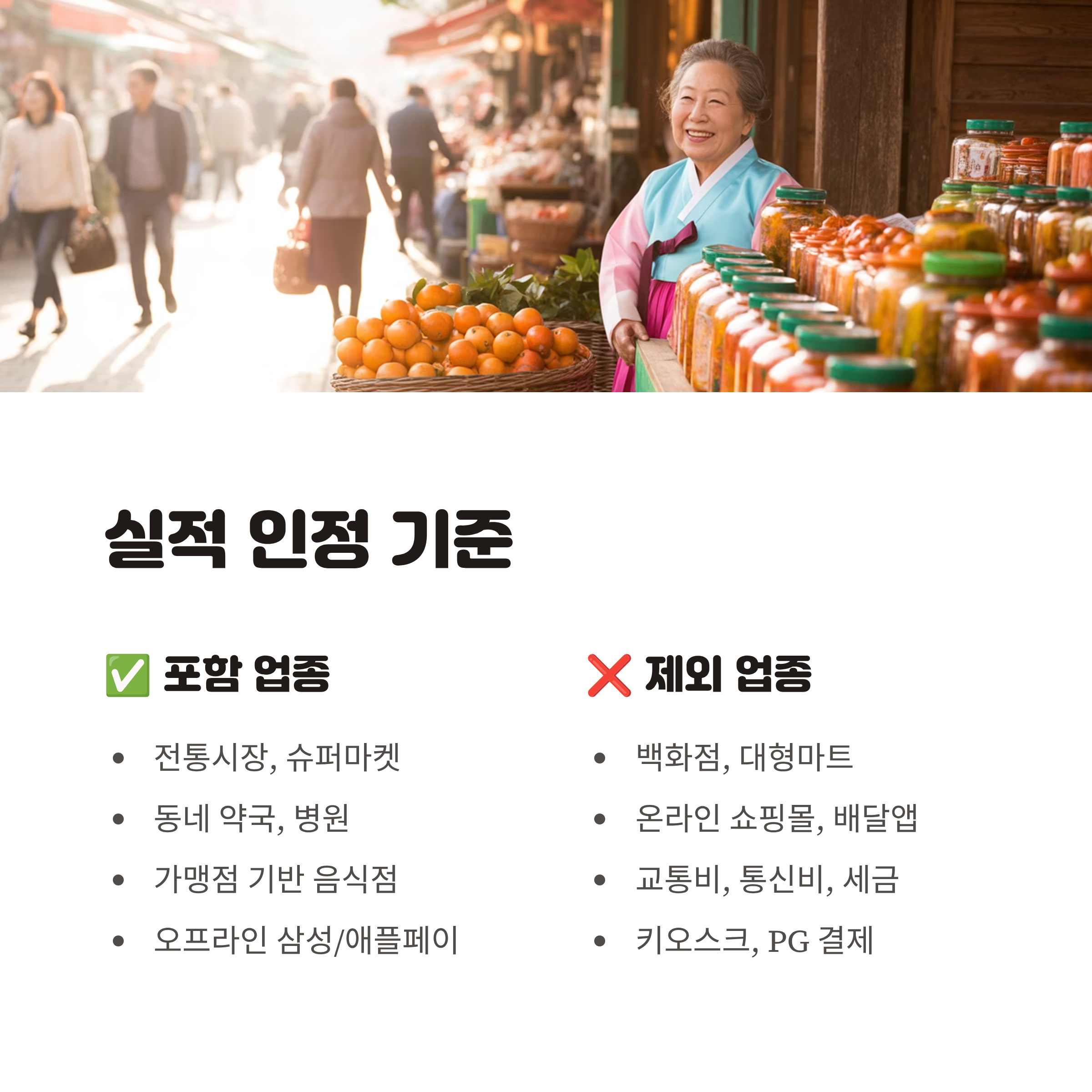 불필요한 소비 유도보다는, 필수지출을 오프라인 소상공인 매장 중심으로 배치하는 전략이 효과적입니다.