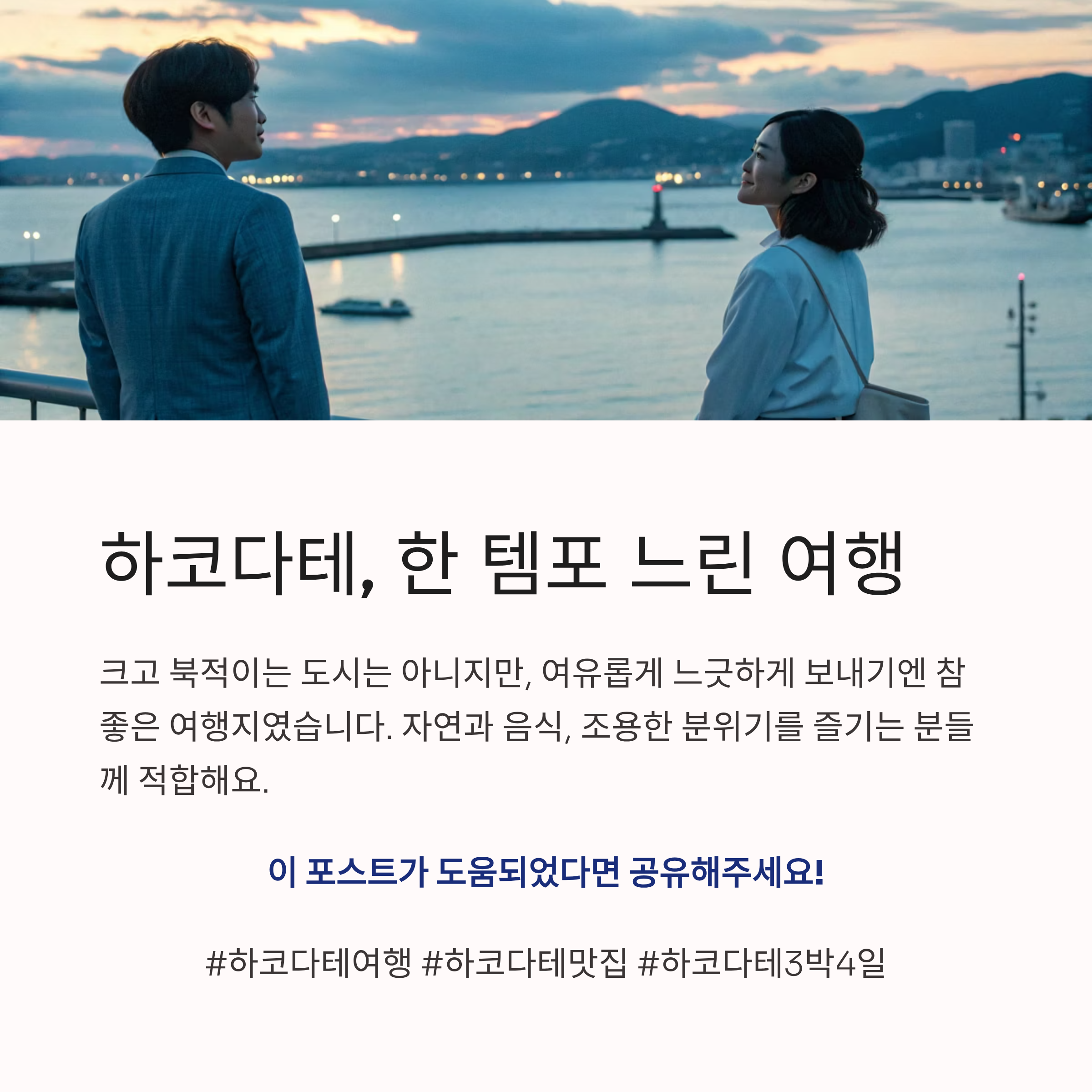하코다테는 크고 북적이는 도시는 아니지만, 여유롭게 느긋하게 보내기엔 참 좋은 여행지였습니다. 쇼핑 위주의 여행보다는 자연과 음식, 조용한 분위기를 즐기는 분들께 적합합니다. 관광과 휴식 사이에서 균형을 찾고 싶은 여행자라면 하코다테, 한 번쯤 가볼 만한 곳이에요.