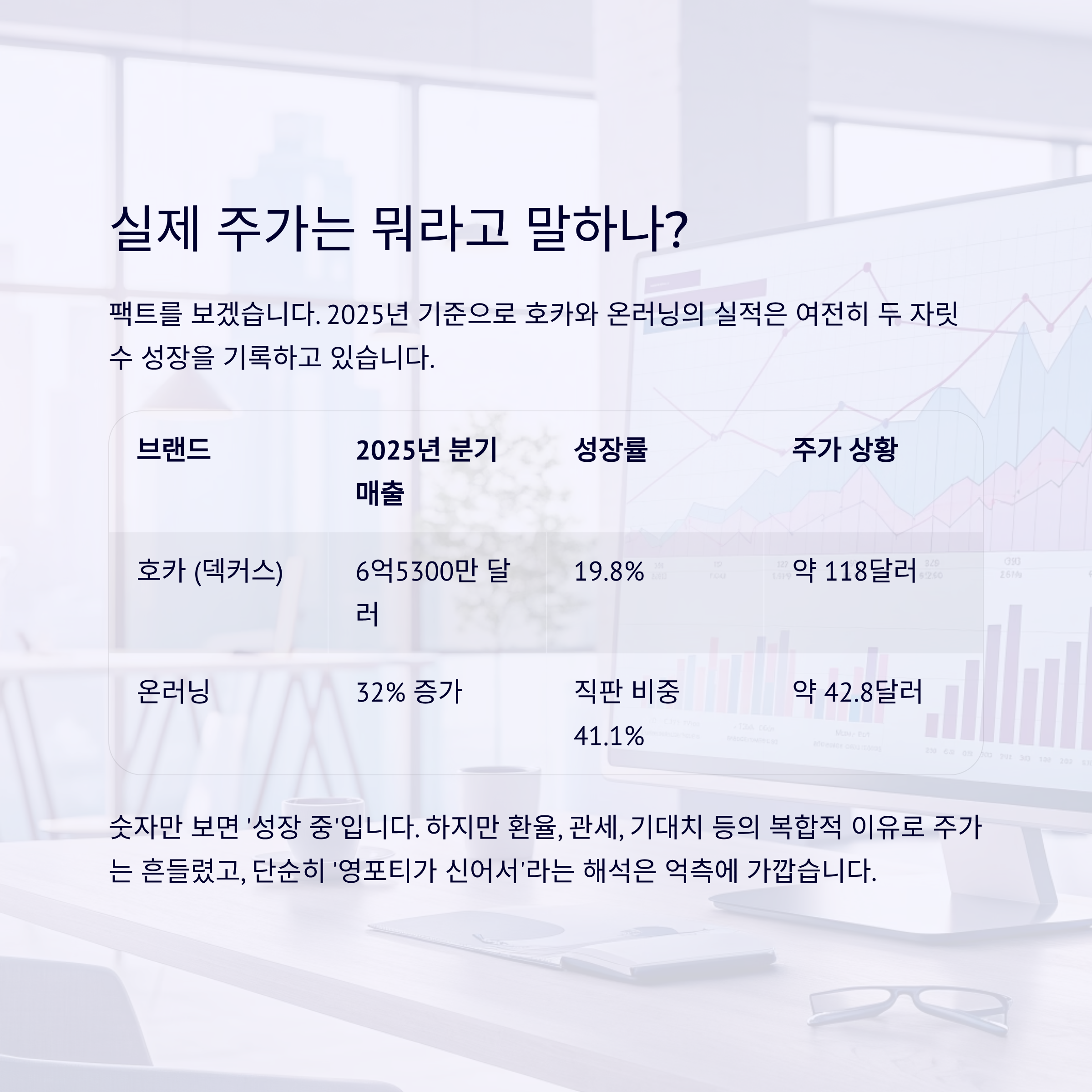 숫자만 보면 ‘성장 중’입니다. 하지만 환율, 관세, 기대치 등의 복합적 이유로 주가는 흔들렸고, 단순히 ‘영포티가 신어서’라는 해석은 억측에 가깝습니다.