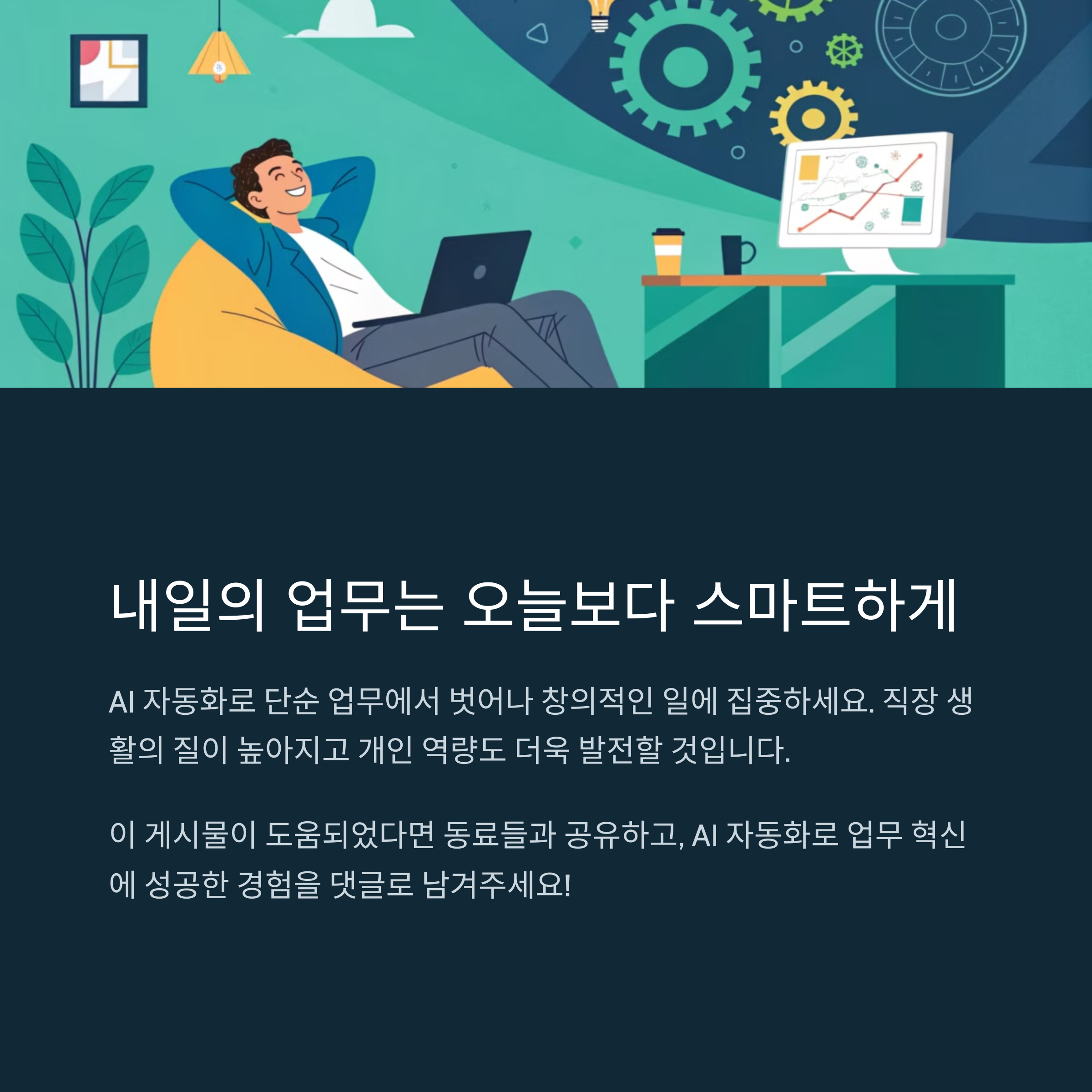 여러분은 AI 자동화를 어떻게 활용하고 있나요? 직장 내에서 어떤 업무에 AI를 도입할 계획이신가요? 댓글로 여러분의 의견을 공유해주세요!