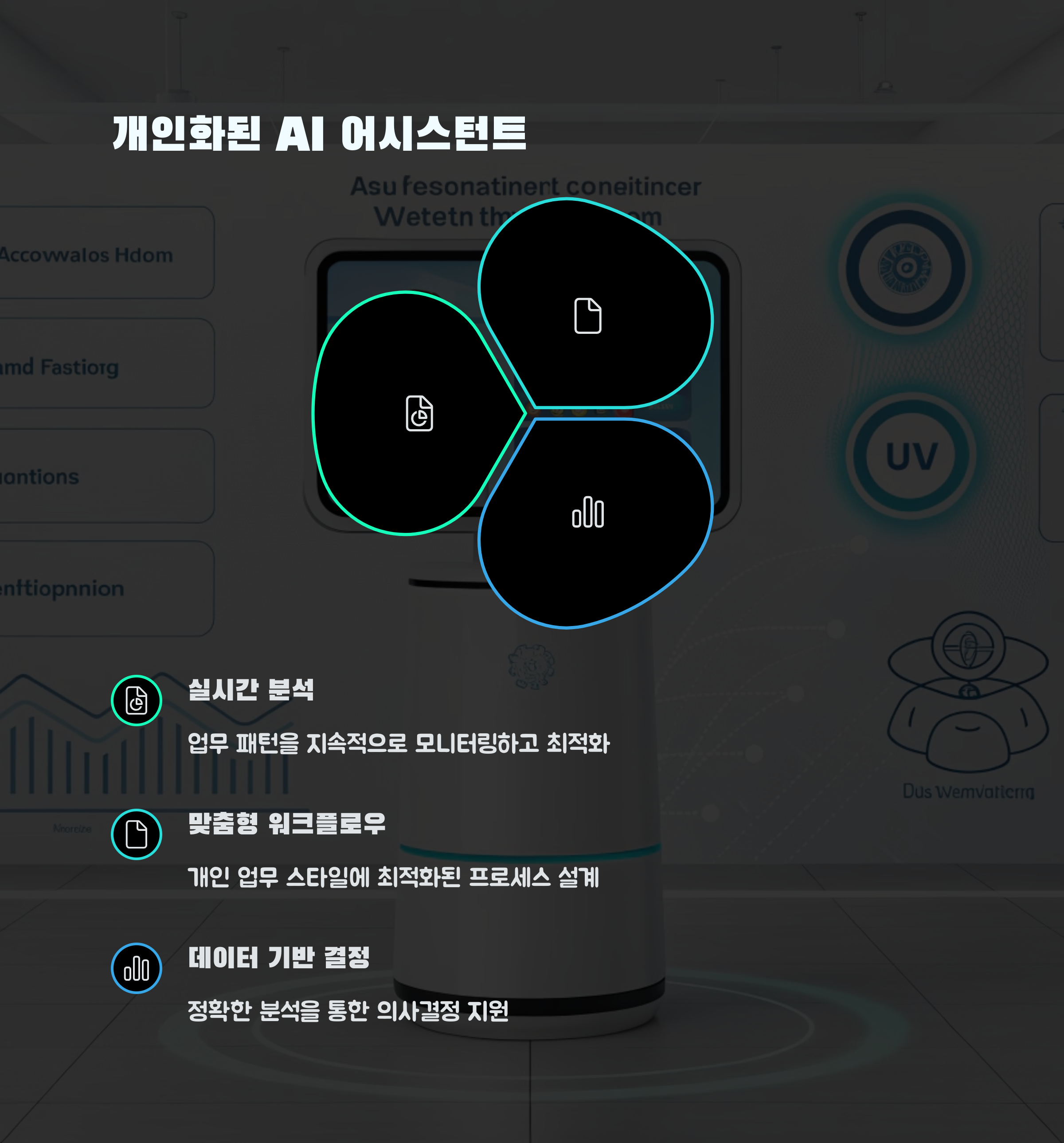 | 반복 작업을 자동화하여 효율을 높입니다. | 사용자 행동을 학습해 맞춤형 작업을 제안합니다. | AI 활용으로 업무 시간이 단축됩니다. |