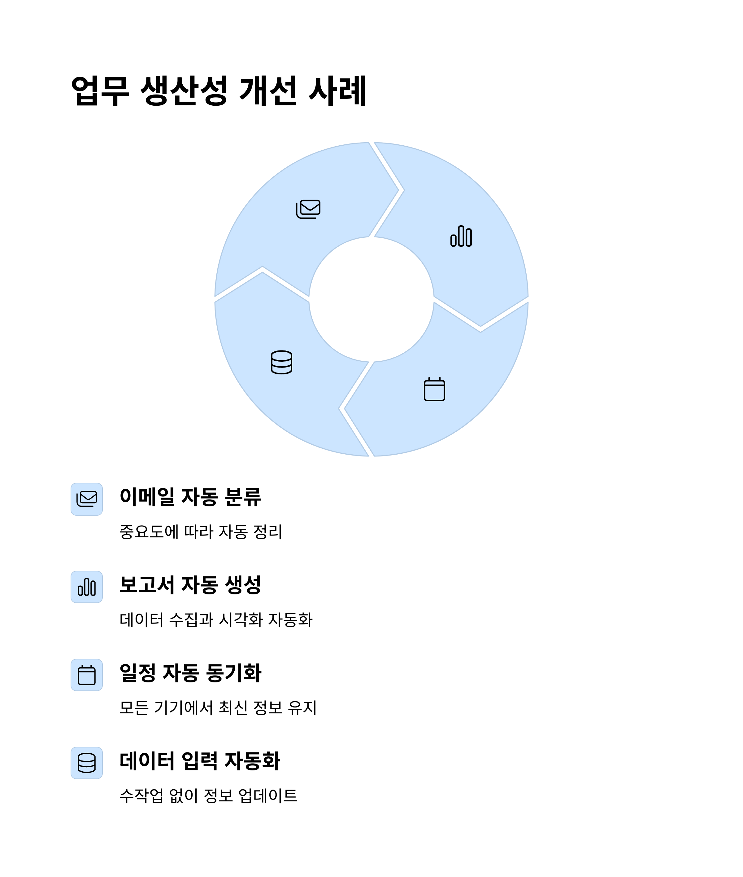 | 업무 자동화 | 효율적인 워크플로우 | 생산성 향상 |